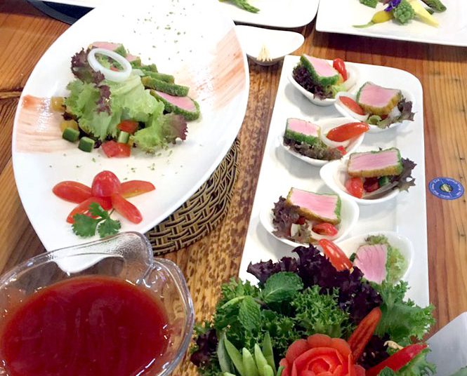 Món cá ngừ đại dương áp chảo sốt chua – salad rau củ quả Đà Lạt của đầu bếp Nhà hàng Phố Đêm |