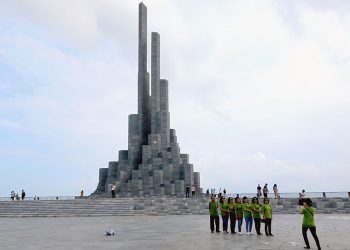 Du lịch tại chỗ, một nhóm khách trong tỉnh check-in ở bến Nghinh Phong - Công viên biển Tuy Hòa....