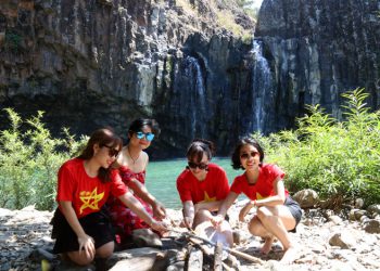 Thác Vực Hòm thu hút nhiều du khách trẻ đến tham quan, trải nghiệm du lịch khám phá. Ảnh: TRẦN...