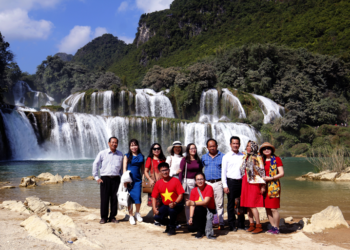 Đoàn famtrip các doanh nghiệp du lịch đến từ TP Hồ Chí Minh, Hà Nội chụp hình lưu niệm tại...