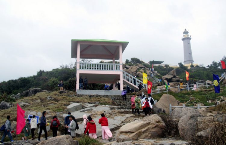 Du khách tham quan danh thắng Mũi Điện, nơi đón ánh bình minh đầu tiên trên đất liền của Việt Nam. Ảnh: TRẦN QUỚI |